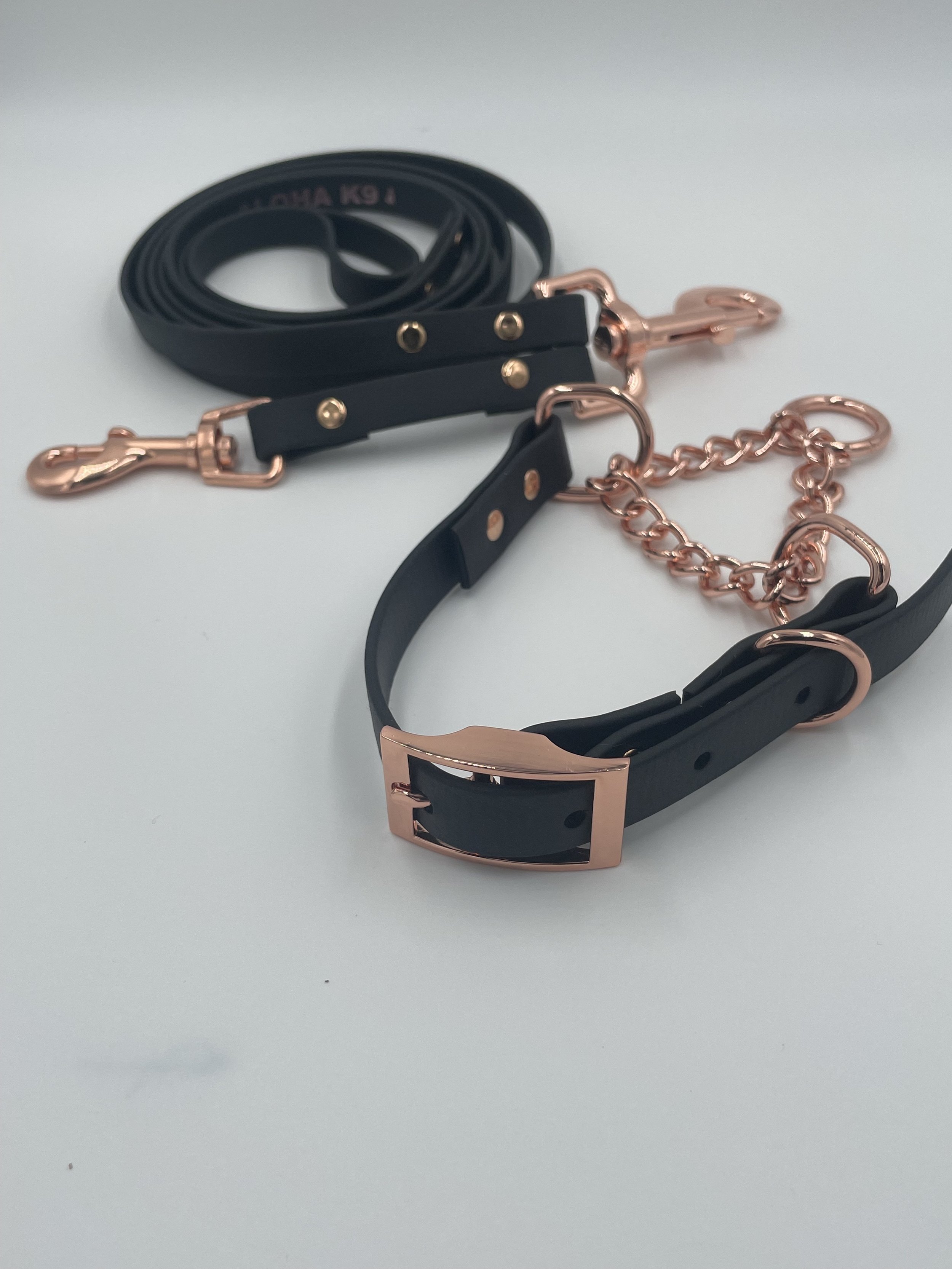 Discover the perfect blend of durability and style with our custom BioThane® leashes and collars, proudly crafted at Aloha K9 Training & Pet Resort since 2009.